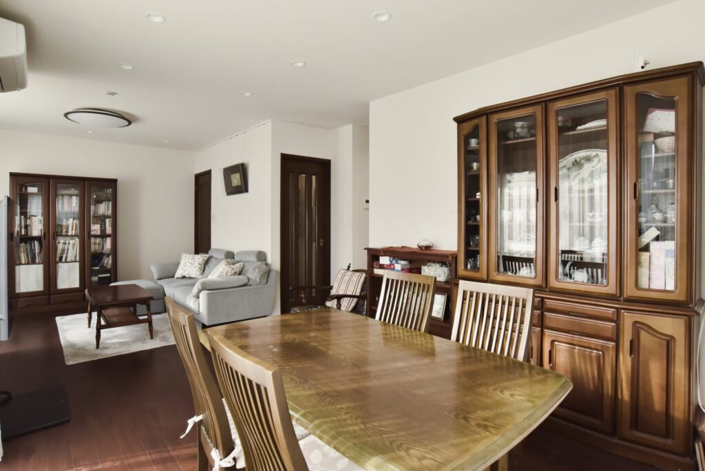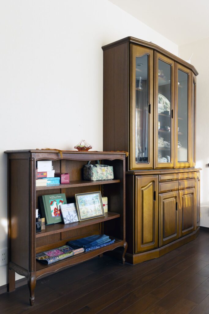 LDに置かれた本棚や家具は、ご両親から引き継いだ大切なもの。奥様は「使い続けてきたものを大切に残したい」と希望されており、由緒ある家具をどこに配置するか、ご夫妻と綿密に打ち合わせを重ねました。