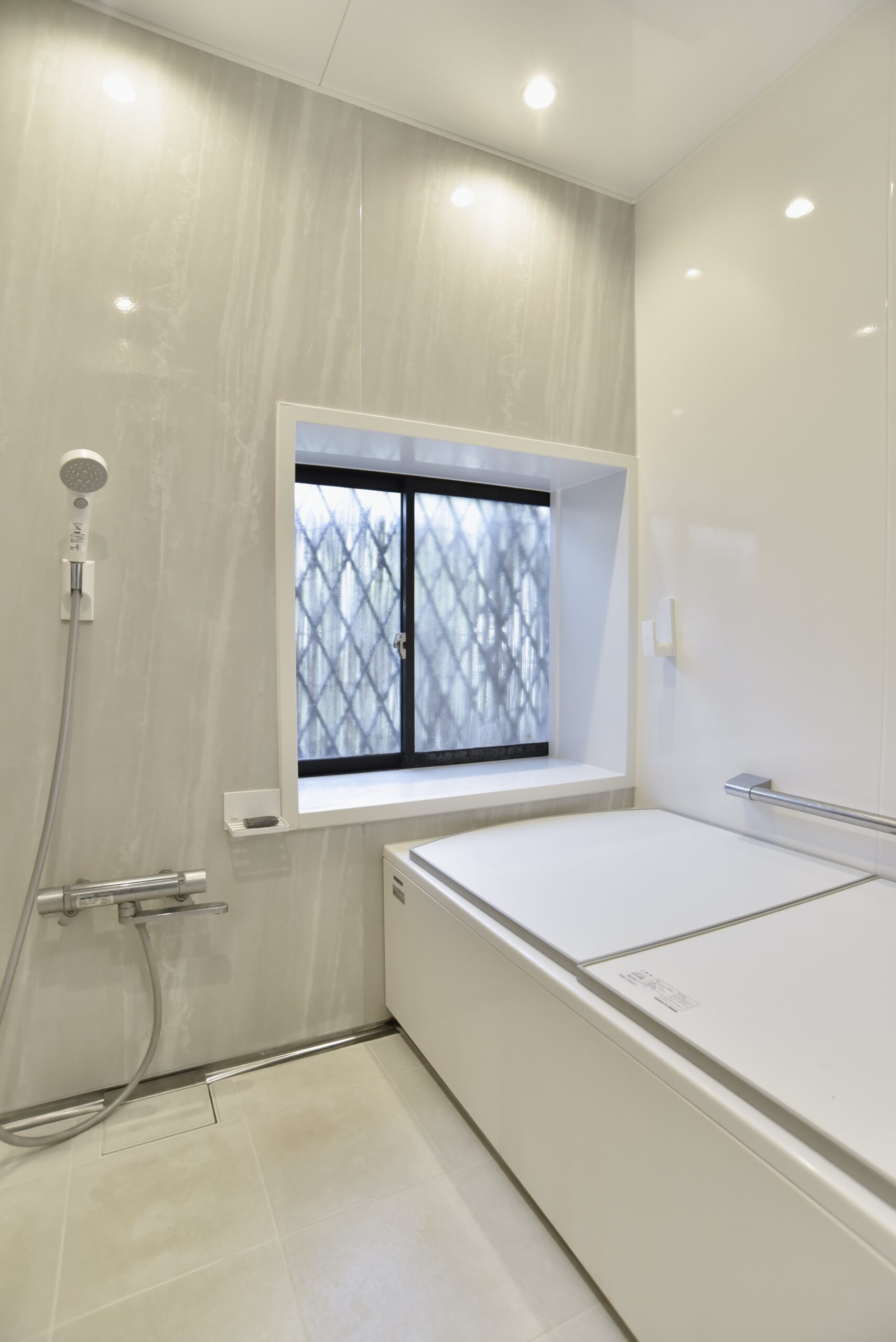 メンテナンスのしやすさと快適さを考えて、キッチンと同様にお風呂もI様が選ばれました。「掃除しやすくて、水滴がすぐに乾くのも便利」と、設備にこだわりを持つI様もご満足の様子です。
