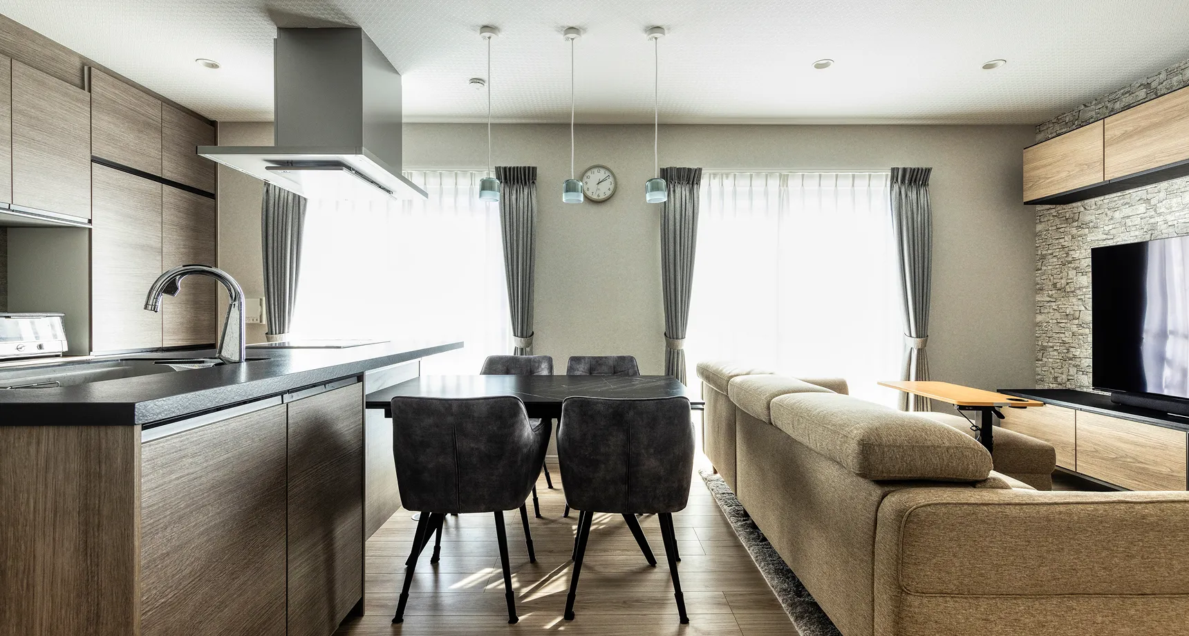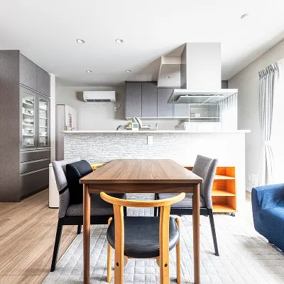 30年住んだ我が家を、人生を楽しむためのチャンスと捉え、大胆にリフォーム。和室とLDKを繋げた大空間は、12人が集まっても余裕の広さ。白と黒をテーマカラーに、華やかさと落ち着きを兼ね備えたデザインに。アイランドキッチンではシェフ気分で料理を楽しみ、家族との会話も弾む。浴室とサニタリーも拡張し、ホテルのような贅沢さを実現。天井高を上げ、間接照明を活用して開放感を演出。愛犬と孫たちものびのび過ごせる、笑顔あふれる"人の集まる家"が完成した。